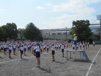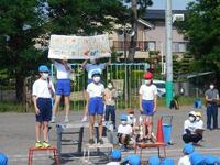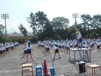 プログラム1番、「ラジオ体操」の練習です。どのタイミングで体育委員会が出てくるのか、どんな合図で体操の体型に開くのか、当日困らないように、一つ一つ確認しながら練習していきます。
