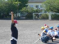 澄み渡る青空の下、久しぶりに全校児童が集まりました。写真は1年生の始めの言葉の練習です。少し緊張しているようでしたが、大きな声ではっきり言うことができっました。