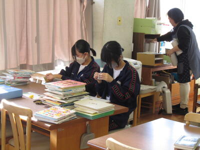 21日(火)から二日間、中学校から2名の生徒が職業体験のため、西小学校に来ていました。学校図書館の本にカバーをつけてくれたり、校庭の落ち葉を拾ってくれたり、1年生と一緒に遊んでくれたりと、大活躍でした。