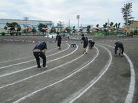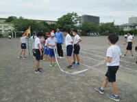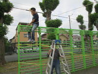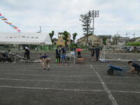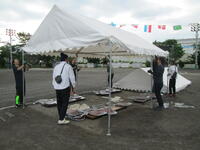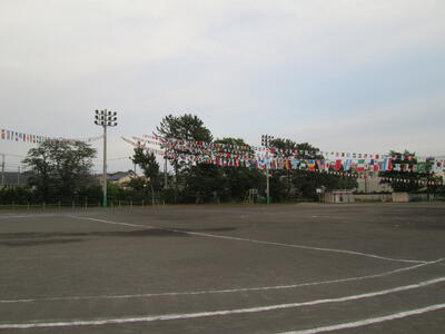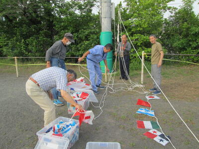 その後、体育振興会の方々が来校し、万国旗を設置してくれました。