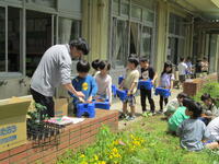 自分の鉢に、野菜の苗を植えました。