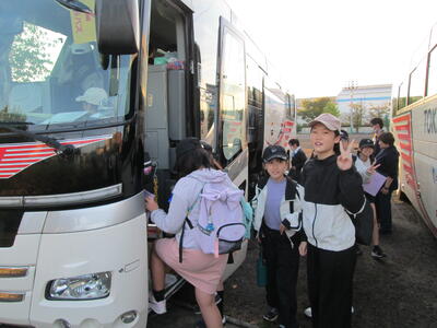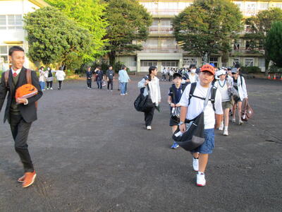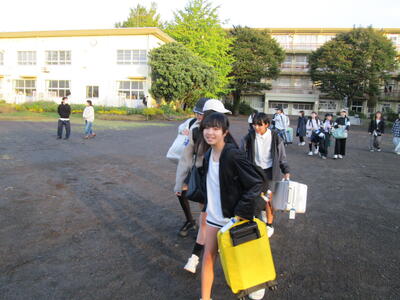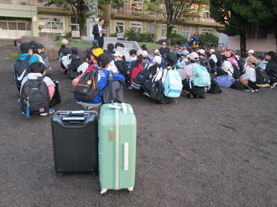 綺麗な日の出と共に修学旅行へ出発です。スローガンの「笑顔と友情で彩る修学旅行〜学びと絆を深めよう〜」を達成できるよう、みんなで協力して素晴らしい修学旅行にしてほしいと思います。