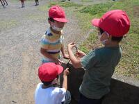 1年生は花壇でアリの巣を見つけたようで、じっとのぞき込んでいました。