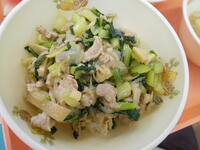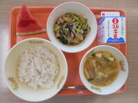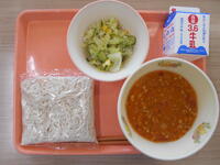 お星様の形をしたハンバーグと、天の川に見立てたそうめん汁で七夕を表現しました。