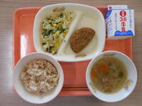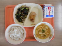 給食の小松菜は、生産者の下里さんが作ってくれたものを使っています。