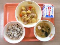 三島市産や静岡県産の食材を多く使っています。今日は旬の三島馬鈴薯をたくさん使った肉じゃがです。