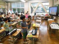 1年生が音楽の時間に、大人気の「エビカニクス」の曲に合わせて体を動かしていました。リズムに合わせて体を動かし、「エビ!」「カニ!」と元気よく歌いながら楽しそうに踊っています。歌いながらリズムに合わせて体を動かすのはなかなか難しいと思ったのですが、みんなとっても上手でした!
