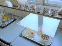 12月12日(月)から16日(金)まで、学校給食週間です。1年生の教室前には、昔の給食(模型)や写真が並びました。これを見れば、いつ頃、どんな給食を食べていたのかが分かります。