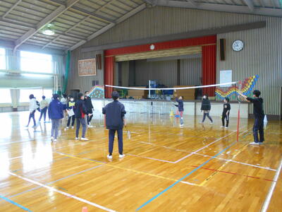 今週の初めに、体育館のフロアの補修と滑り止めの薬品を塗っていただきました。フロアを乾燥させるために二日間使用禁止となっていたのですが、今日から使えるようになりました。ピカピカになった体育館を最初に使ったのは、先週器具の移動をやってくれた6年3組です。1時間目にお楽しみ会でバドミントンを楽しみました。