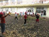 6月からお世話をしてきたさつまいも。収穫の時がきました!初めに、長く伸びたつるを「うんとこしょ、どっこいしょ」と、みんなで力を合わせて引っ張りました。つるを見てみると大きなおいもがついてきました。「見て見て!こんなにおっきなおいも~!」と、とてもうれしそうです。次に、さつまいもの周りの土を掘っていきました。一気に抜きたいところですが、さつまいもが折れてしまうので優しく優しくです。自分のげんこつよりも大きなさつまいもを、たくさん掘ることができました。いも掘りの後には、つるで縄跳びや綱引きで遊び、楽しい秋の一日になりました。