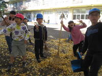 3・4年生、本当に頑張ってくれたのですが、その上から再び舞い落ちる木の葉・・・