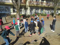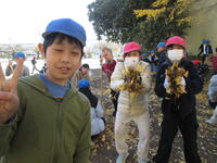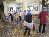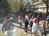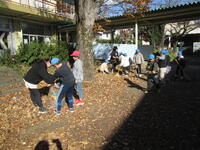 寒風吹きすさぶ中、落ち葉拾いを行いました。
