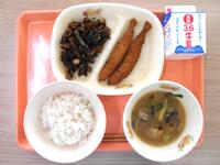 12月5日(金)の給食 投稿日時 : 12/05 栄養士 今日の献立 牛乳 麦ごはん ししゃもフライ ひじきの炒め煮 みそ汁 主な食材の産地 さつまいも(生産者の下里さん) 大根(生産者の杉山さん) 小松菜(生産者の下里さん) にんじん(三島市産) しめじ(生産者の長谷川さん) 鶏肉(静岡県産)