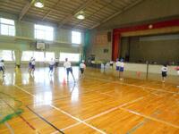 体育館ではバドミントンクラブとボールゲームクラブが活動していました。換気を十分にし、さらに大きな扇風機を使って熱中症対策を行っています。