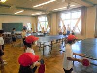 第2音楽室では卓球クラブが活動しています。広い音楽室に卓球台を並べ、いろいろな学年の子が楽しんでいました。