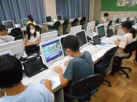 パソコン室ではパソコンクラブの子たちがソフトを使ってタイピングの練習をしていました。エアコンが効いていて涼しそうです。
