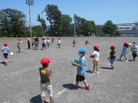 屋外ゲームクラブは、暑い日にぴったりの水遊びです。各自水鉄砲を用意して、気持ちよさそうに楽しんでいました。