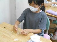 2年生が小さな木のブロックでいろいろなものを作りました。ブロックを一つ一つ木工用ボンドで付けていきます。家を作ったり、花を作ったり、新幹線に挑戦する子もいました。