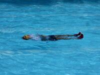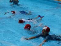 3時間目に4年生が体育で着衣泳を行いました。服を着たまま泳いでみると、いつもとは勝手が違って体が重たく感じられます。