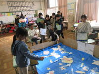 5・6時間目に、5年生がトヨタ自動車の方をお招きして出前授業をしました。自動車ができるまでの工程についてお話をうかがった後、時間内に指示どおりに自動車を組み立てることができるか友だちと協力してチャレンジしたり、実際に自動車をつくるときに使う作業着などを着させていただいたりしました。