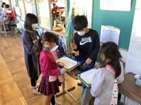 算数の「くらべてみよう」学習では、紙テープを使って木の幹の太さ比べをしたり、色水を使ってかさ比べをしたりしています。「試してみるのはおもしろいね!」「実験みたいだからよくわかる!」と 、わかったことを目を輝かせながら教えてくれました。