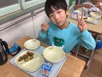 1.2年生の教室に調理員さんが給食訪問をしました。一緒に給食を食べた後に質問コーナーがありました。何時から作っていますか、一番大変なことは何ですかなどたくさんの質問がでてきました。最後に全員で感謝の気持ちを伝えました。