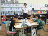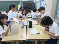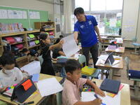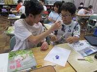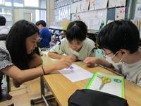 トヨタ自動車の方に来ていただき、車がどのようにしてできるのかを教えていただきました。始めに映像で組み立ての様子を教えていただきました。品質を保ちつつ、短い時間や低予算で行う工夫をたくさん教えていただきました。次に、実際に組み立ての際に使っている道具を触ったり、実際に組み立てたりする体験を行いました。組み立ての体験の際には、「頑張れ」や仲間の名前を呼びながら応援するなど、楽しく学習に取り組むことができました。