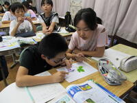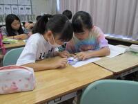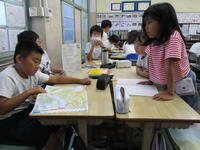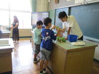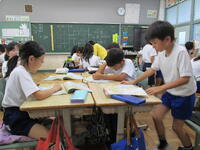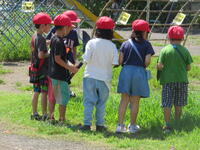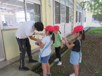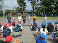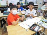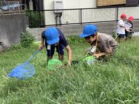 生活科の学習で清住緑地に行きました。清住緑地に着くと「あじさいが咲いていないよ。」「草がぼうぼうになっているんじゃない?」など、3か月ぶりの公園の様子の違いに気づいて話をする子もいました。夏の終わりの公園の様子を観察しながら、虫取りもしました。曇り空の中、声はするけれど姿が見えないコオロギ、ものすごい速さでとんでくバッタやトンボと「対決」した1年生でした。