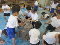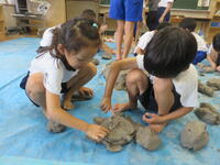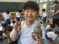 県立美術館さんから粘土をお借りして造形遊びをしました。自分の思いを形にしたり、友達と一緒に作ったりしました。1年生の想像力、創造力にはいつも驚かされます。
