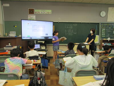 絵が描き終わった子は、九九の早押し問題に挑戦していました。
