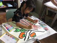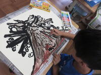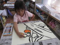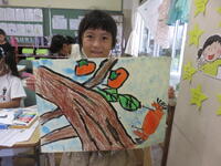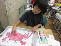「かにむかし」の話を聞いて、心に残った場面の絵を描きました。筆で木の幹を描いたり、タンポで背景を色づけたり、新しいことにも挑戦しました。完成が楽しみです。
