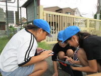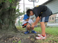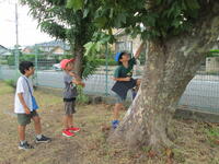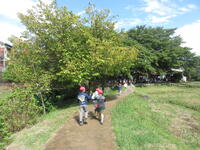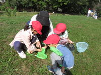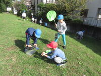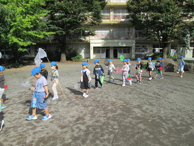 虫博士と一緒に清住緑地で虫取りをしました。「今日は涼しいから虫があまりいないかもしれないね。虫もみんなと同じなんだよ。」「虫はどこにいるかな?」「虫は何色をしているかな?何を食べるかな?」など話を聞いたあと、早速虫取りをしました。秋晴れの中、元気いっぱい公園を走り回る1年生。楽しそうな声が響き渡っていました。
