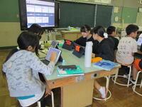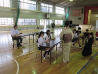 本日、4年生を対象にバリアフリー教室がありました。目の見えない方の話や車椅子の運転体験、車椅子を用いてバスの乗降体験、めんぼーくんによる講話など様々な体験をしました。