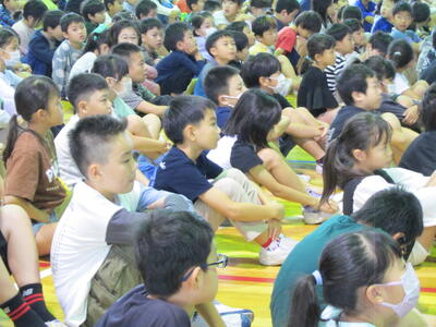動物たちのニュースやブックママンの方の音楽や踊りなどを、子ども達は目を輝かせながら見入っていました。