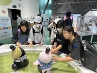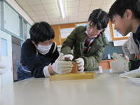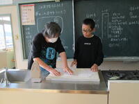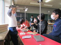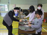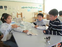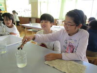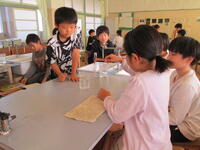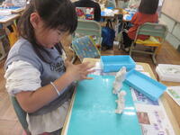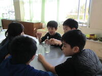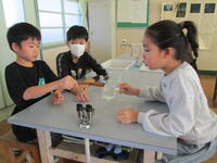 お湯と氷水を用意し、シャボンの膜の動きを観察していました。