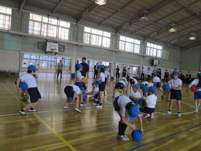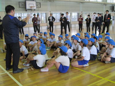 ポートボールの授業を、市内の先生方が参観に来ました。