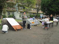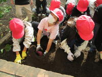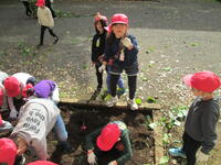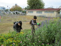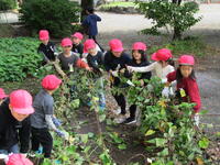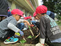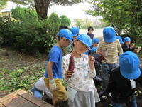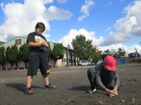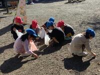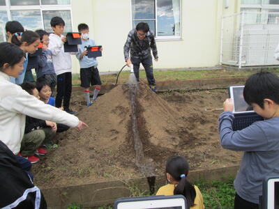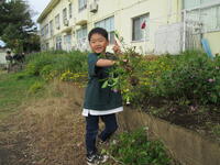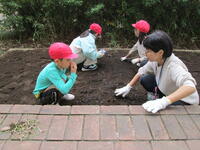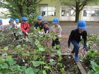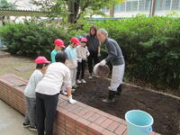 環境整備作業できれいになった、職員室前の花壇で実験です。