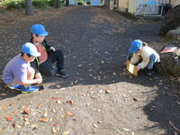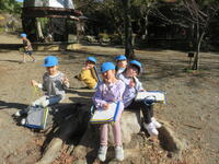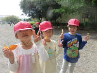 秋晴れの中、楽寿園に出かけました。楽寿園では、グループごとに赤い葉っぱや実のなる木などを見つけるミッションに挑戦!クリアすると乗り物に一つ乗ることができました。そのほか、どんぐりを拾ったり、アスレチックをしたりして秋の一日を楽しみました。