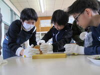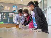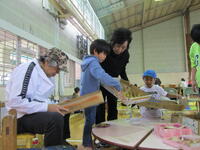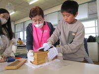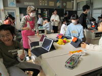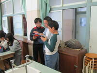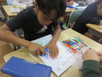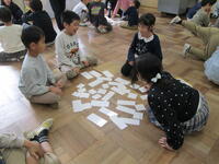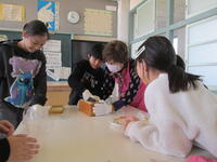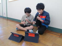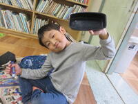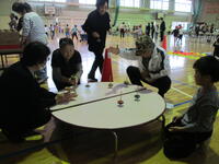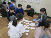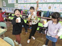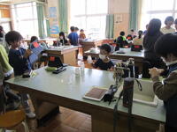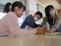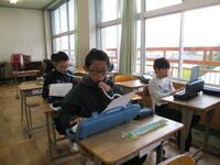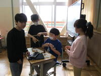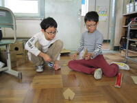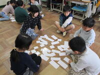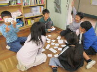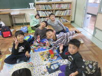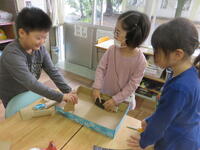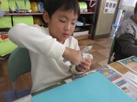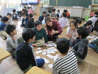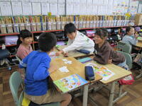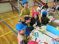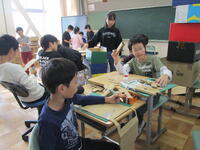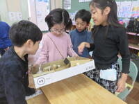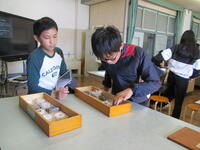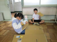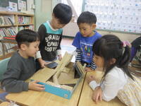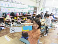 天候不順のため、校外学習が延期になったので、教室でどんぐり迷路を作りました。グループで考えを出し合い試しながら作った迷路には、落とし穴などのしかけがたくさん!どんぐり迷路屋さんを開いて友達と楽しみました。お昼はお家の方が作ってくださったお弁当を食べました。おいしいお弁当に笑顔いっぱいの1年生でした。