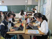 市の国際交流室の方々のお力を借りて、台湾の小学校とリモートで交流しました。