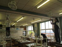 すっかり秋の気配で、落ち葉拾い、各教室のエアコンフィルター取り外しと扇風機の掃除、窓拭き等、たくさんの保護者の方々にご協力いただいたおかげで学校全体がピカピカになりました。