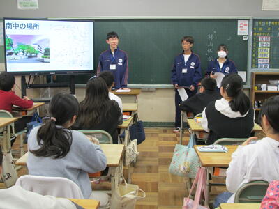 職場体験に来ている南中生が、南中学校の様子を教えてくれました。