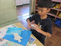 久しぶりの粘土を使っての学習です。自分と一緒にお散歩したい生き物を作りました。かたまりの粘土から足や手、顔を引き出すのは、1年生の小さな手ではなかなか大変です。たっぷり2時間かけて、サメや恐竜に乗ったり、ペットの犬と歩いたりする立派な作品ができました。