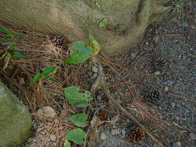 木に松かさ(松ぼっくり)がなっていますが、地面にもたくさん落ちています。