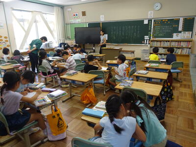 算数の学習、夏休みの思い出サイコロトーク、漢字テストなど、各クラスでそれぞれ取り組んでいました。