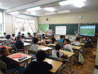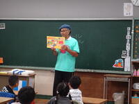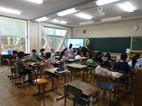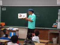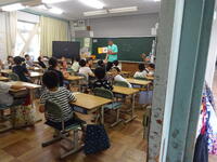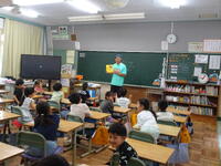 1年生の教室に、「めんぼーくん」が来てくださり、軽快なトークに子供たちが惹き付けられていました。
