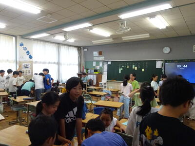 係決め、夏休みの思い出ビンゴ、サイコロトークなど、担任や友達と楽しく話をしながら進めていました。