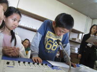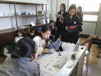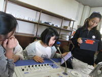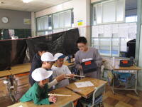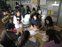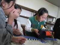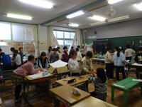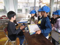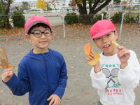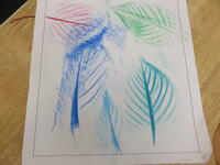 ここ数日の冷え込みで校庭の木々がきれいに色づき、葉を落とし始めました。その葉を拾って、「こすりだし」に挑戦しました。 紙をしっかり押さえて、色鉛筆を寝かせて……きれいな模様が浮き出てきました! 魔法みたいな「こすりだし」に、大喜びの1年生でした。
