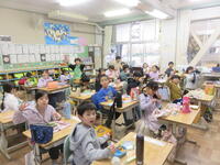 今日は校外学習の予備日で給食がなかったので、教室でおうちの方が作ってくださったお弁当を食べました。教室でお弁当を食べるなんて、なんだか不思議。「いただきます」をすると、「見て見て!大好きなグラタン!」「このおかずはね、一緒に作ったの。」「おむすびの中はね、うめぼし!」などたくさんの話をして、とてもうれしそうでした。お弁当のご用意、ありがとうございました。