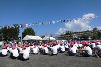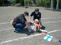 西小学校区体育振興会の方々です。毎年、万国旗を掲げてくださっています。